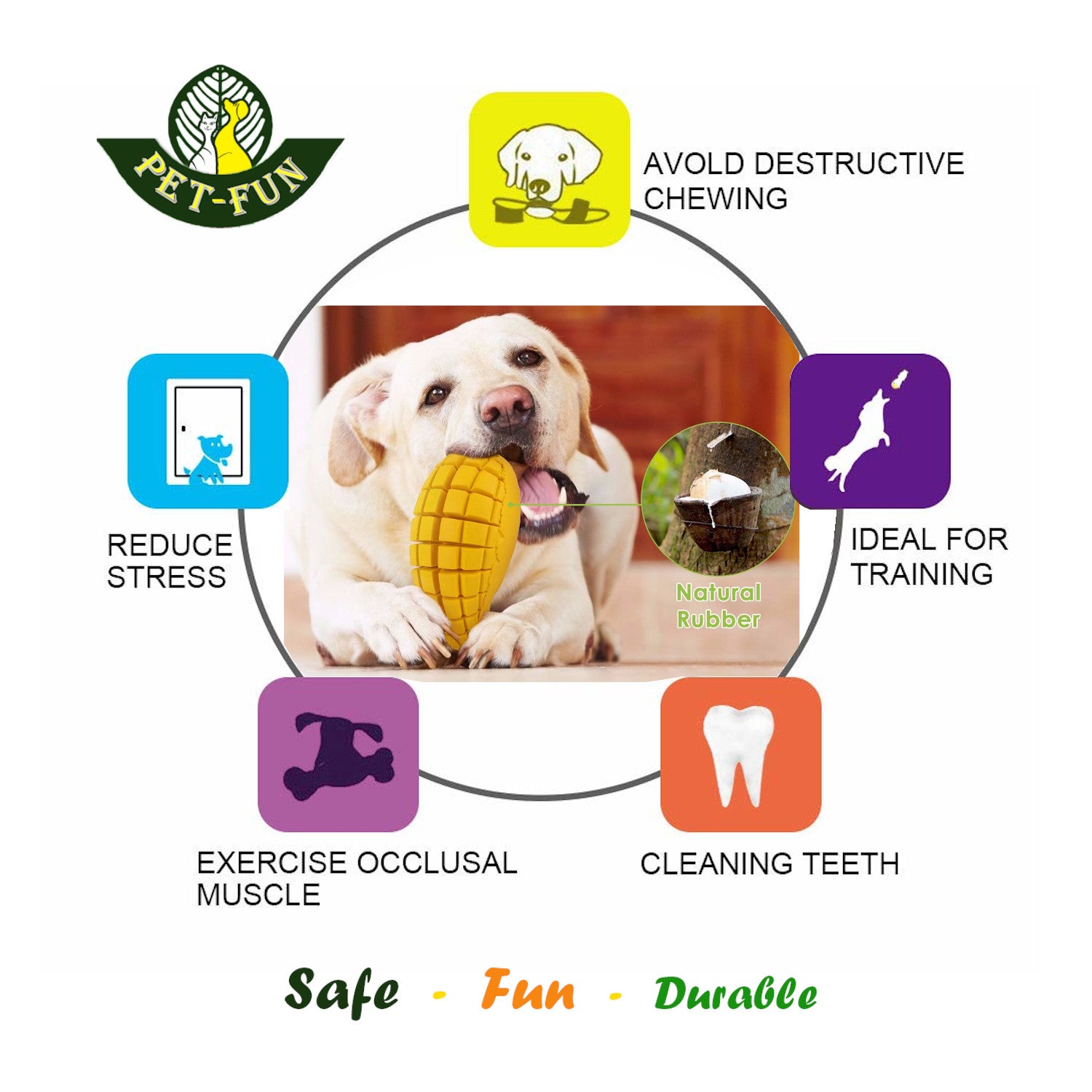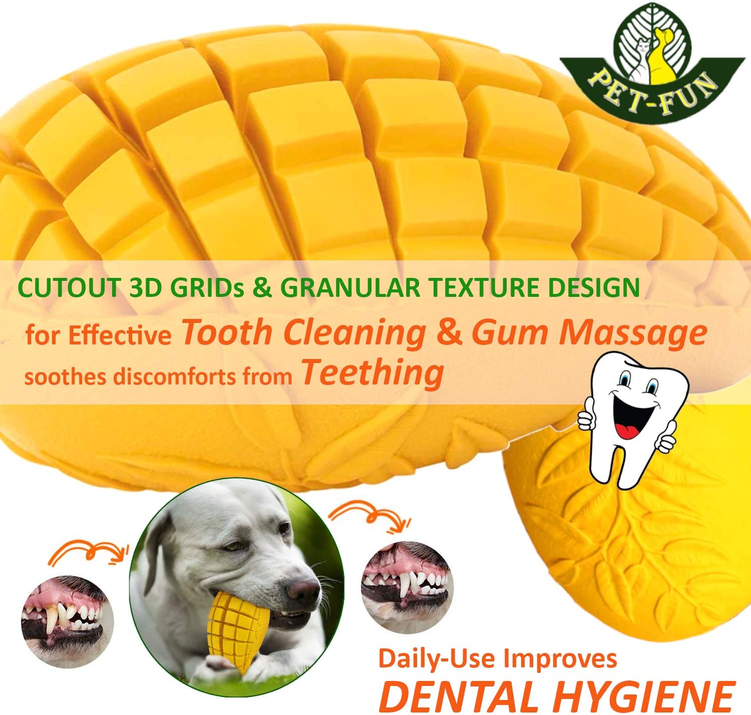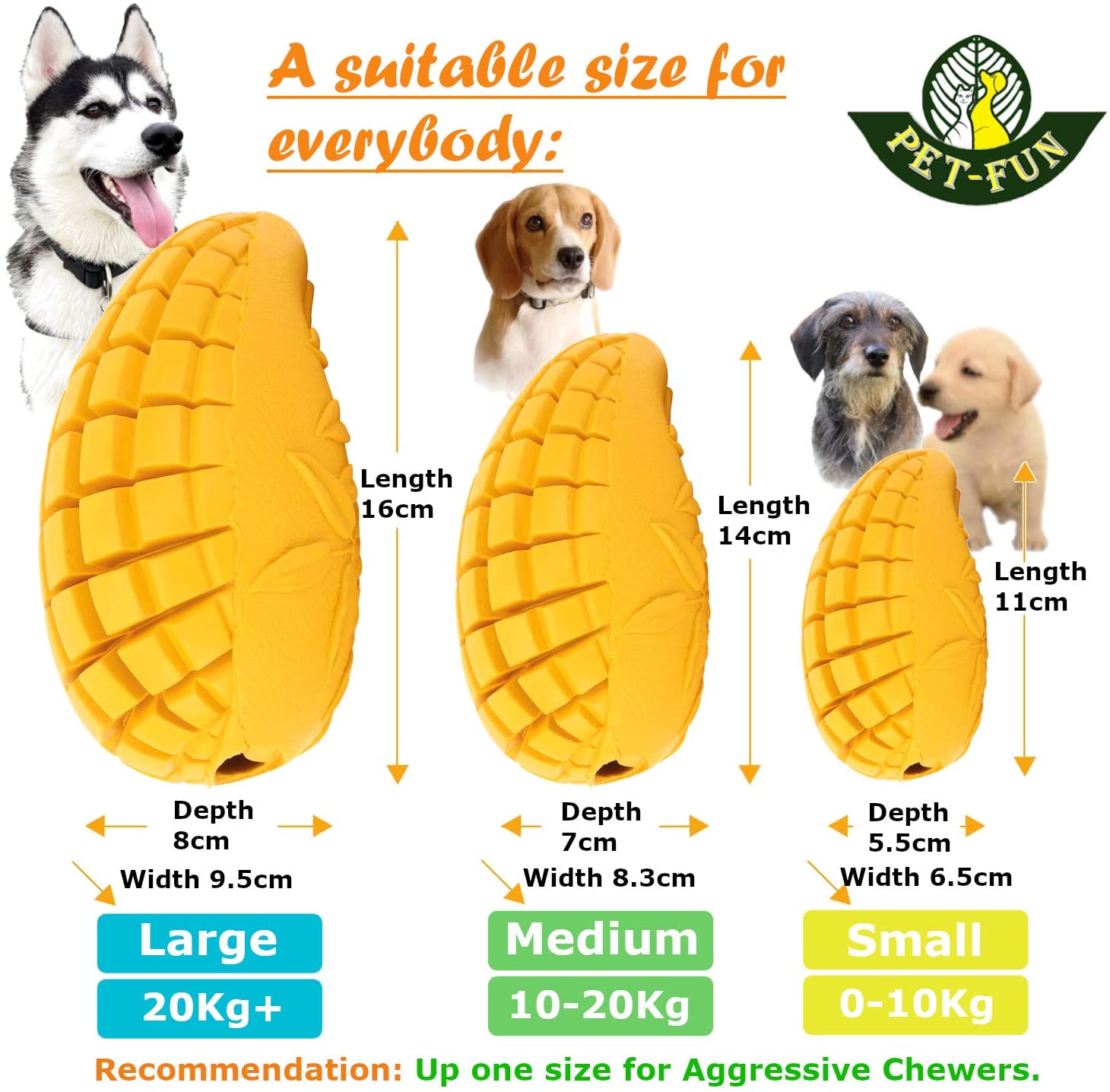 ♥ This remarkable dog chew toy mango helps satisfy dogs' instinctual needs for chewing and play, provides mental stimulation and promotes healthy chewing, which are important for dogs' physical and mental development, emotions and behaviour. This toy helps solve destructive chewing, teething, boredom, separation anxiety, weight management, crate training and more.