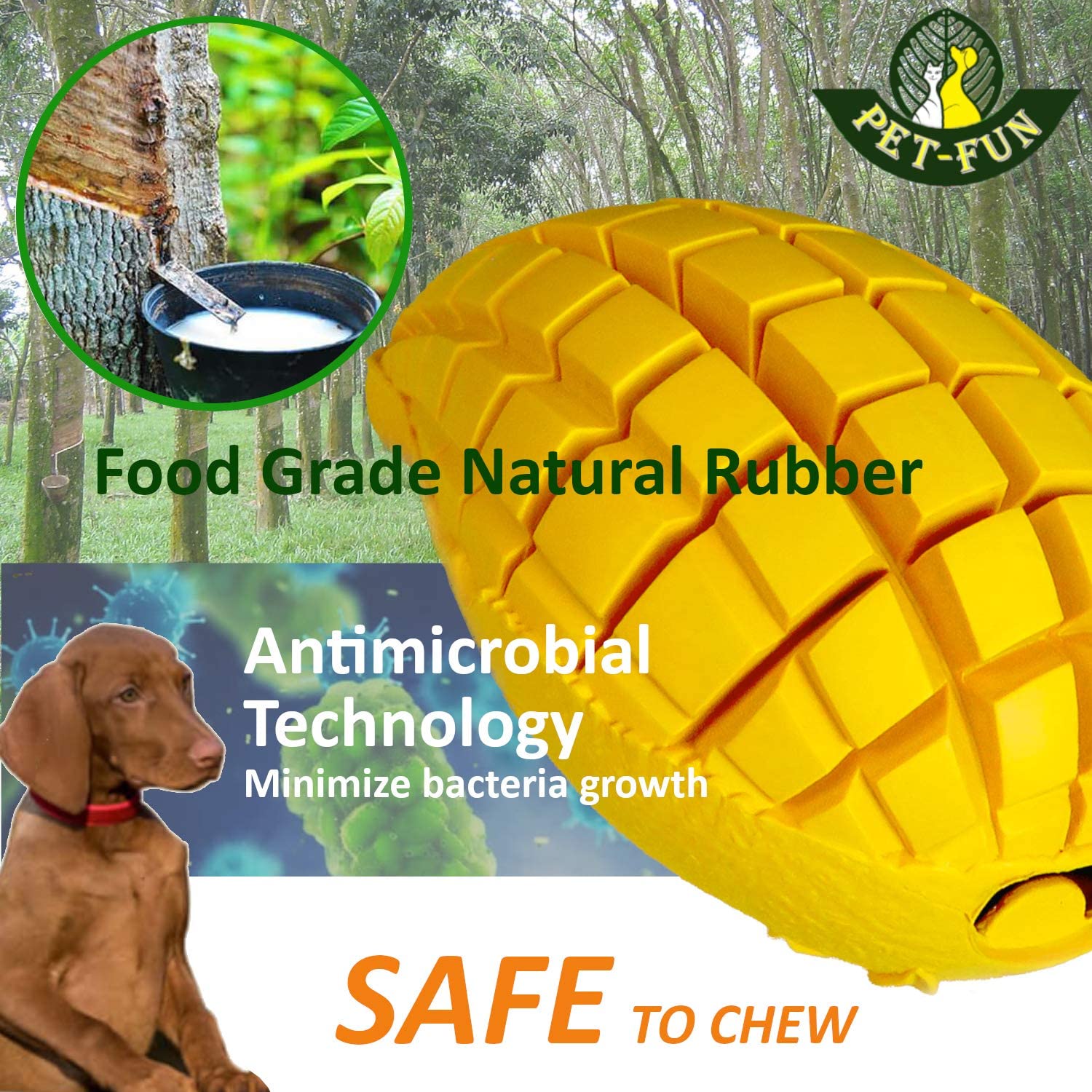♥Safe, Fun, can be Frozen and Easy to Clean: Made from food-grade natural rubber with Mango flavour and tested against FDA standard to meet the highest safety measure. With anti-bacteria agent built-in, this unique toy gives you peace of mind for your beloved dog. It can serve as a chew toy, a frozen peanut butter 'ice-lolly', a food dispensing toy, a slow feeder, a fetch toy with erratic bounce, and great for training and exercise. It can be frozen, & easily washed by rinse or dishwasher.